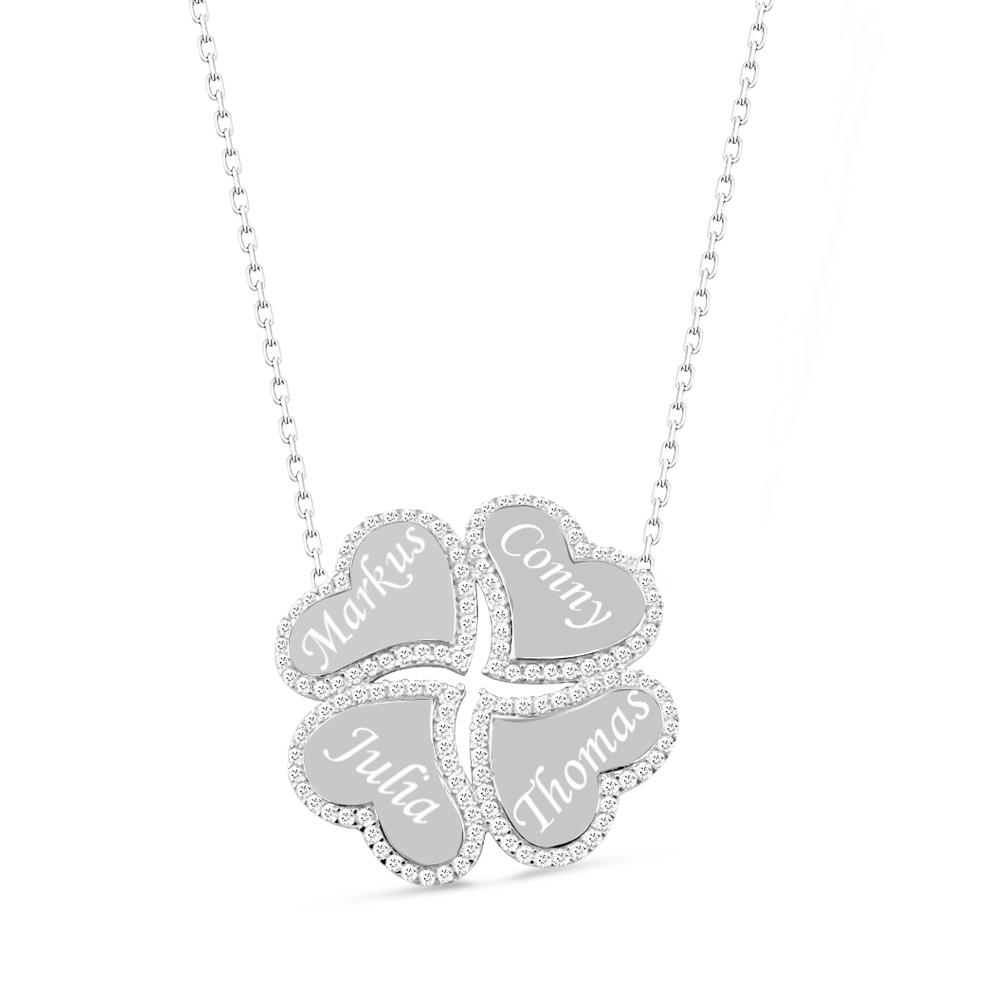 Zirkonia Halskette mit Herz Kleeblatt Anhänger - Otanto