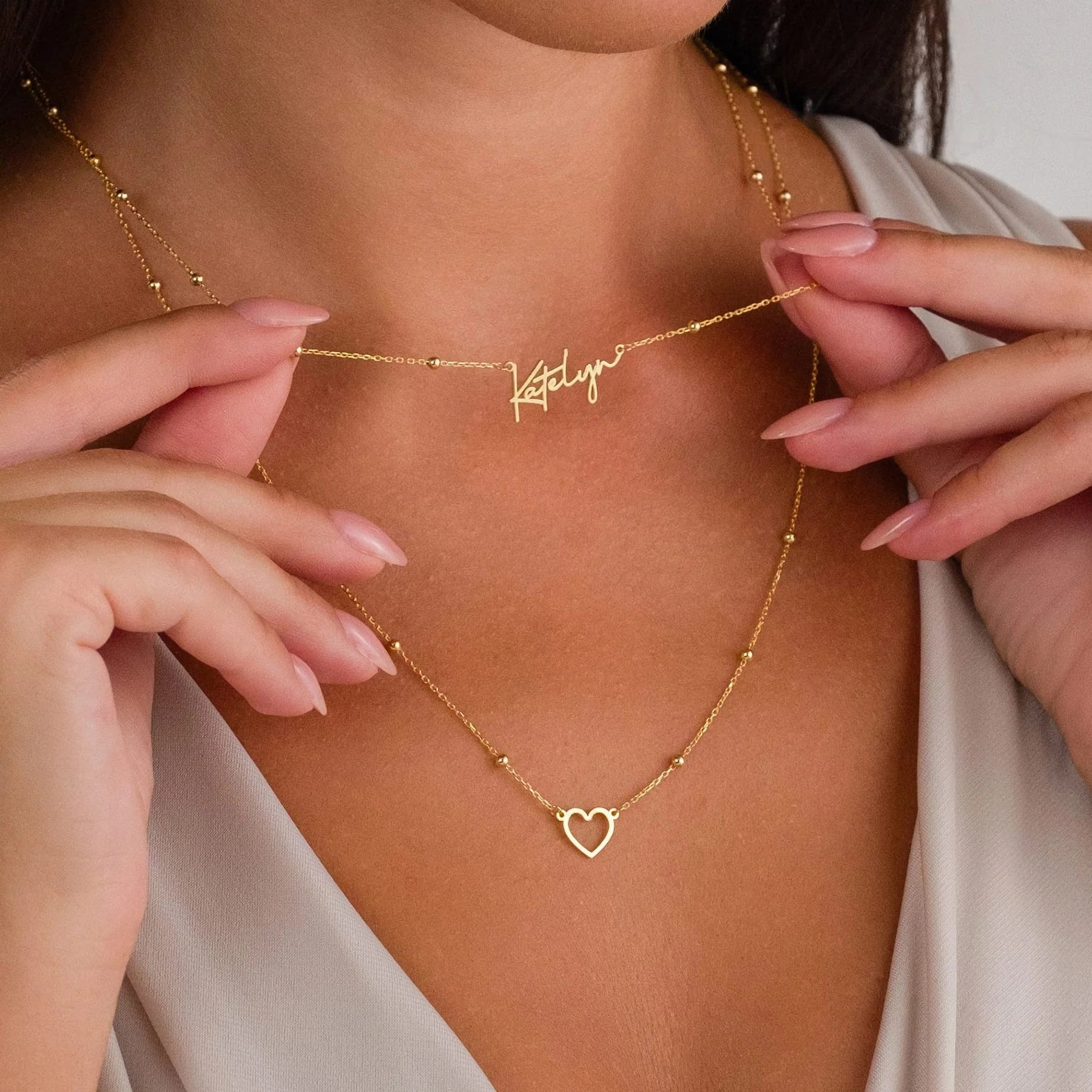 Setze ein ganz persönliches Statement mit dieser eleganten, personalisierten Namenskette aus echtem 925er Silber, veredelt mit einer hochwertigen Vergoldung. Dieses stilvolle Schmuckstück kombiniert eine individuelle Namensgravur mit einem romantischen Herzanhänger und macht jede Kette zu einem einzigartigen Unikat.