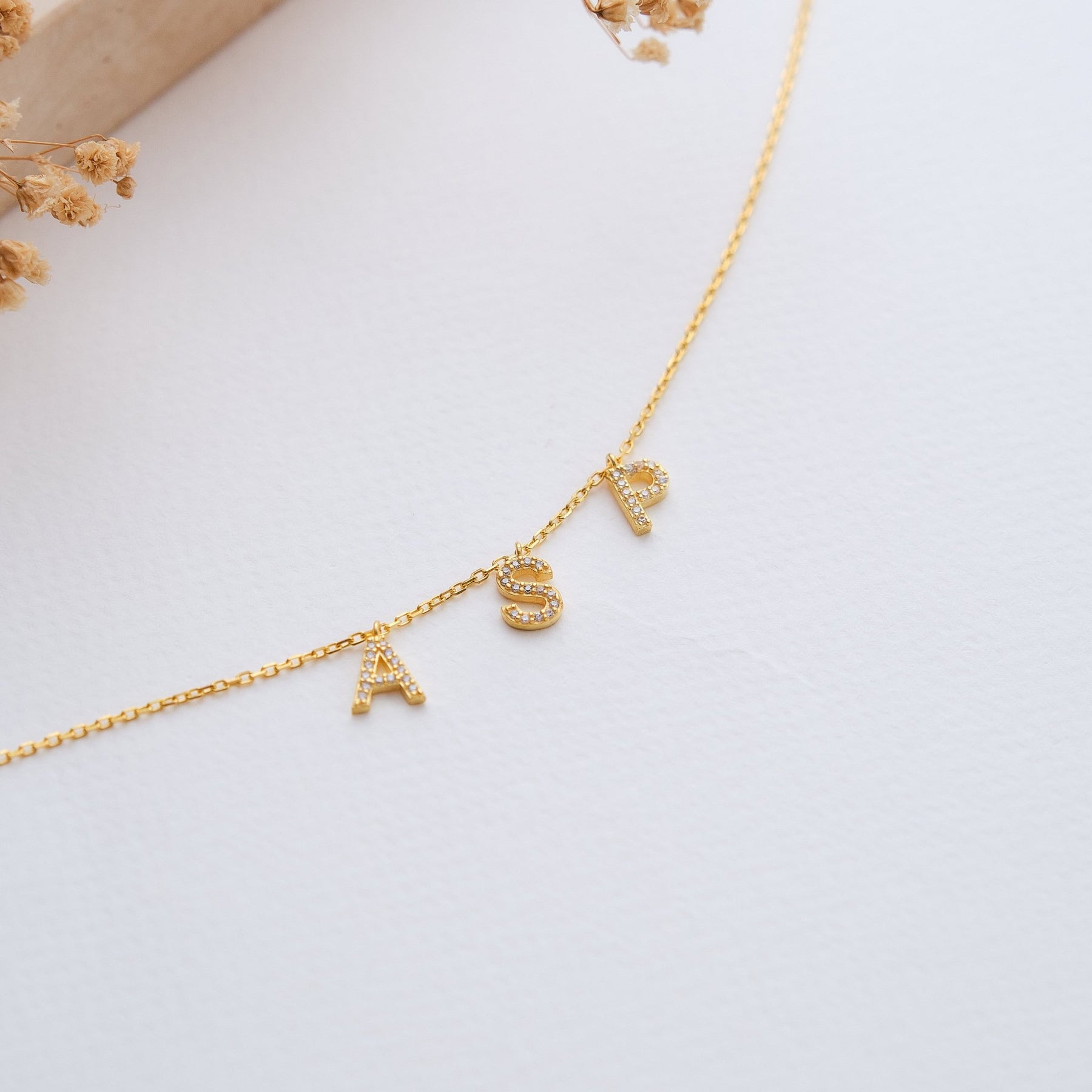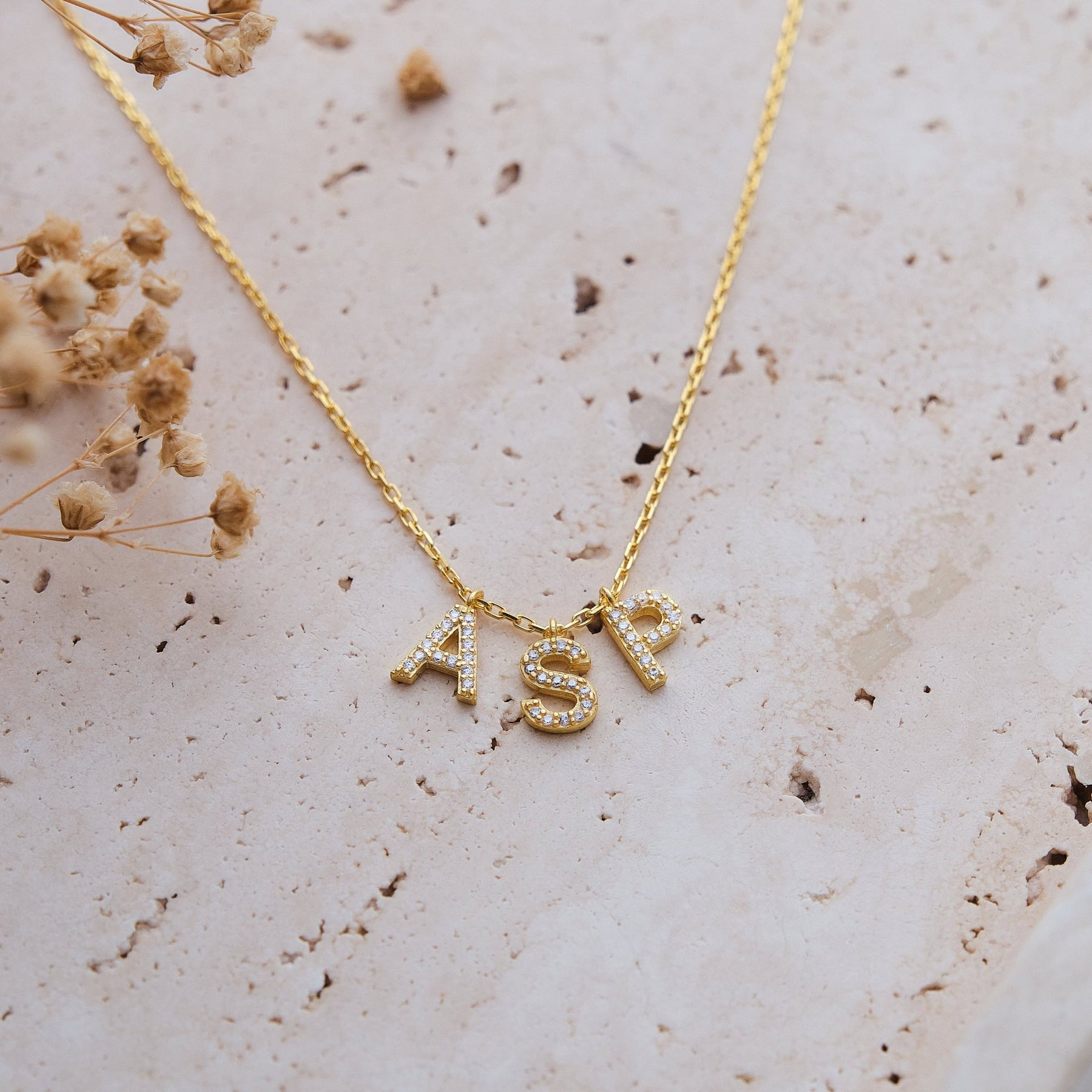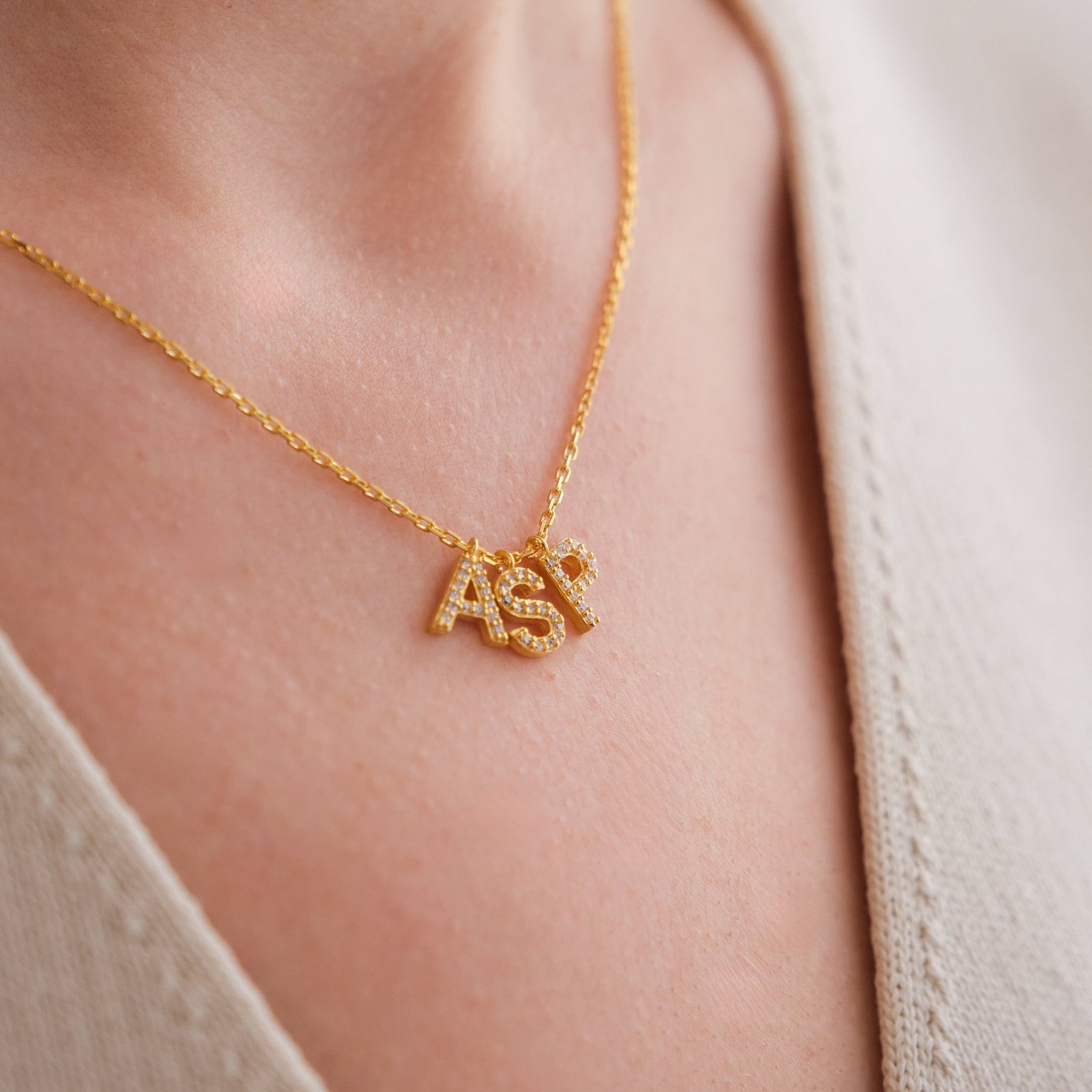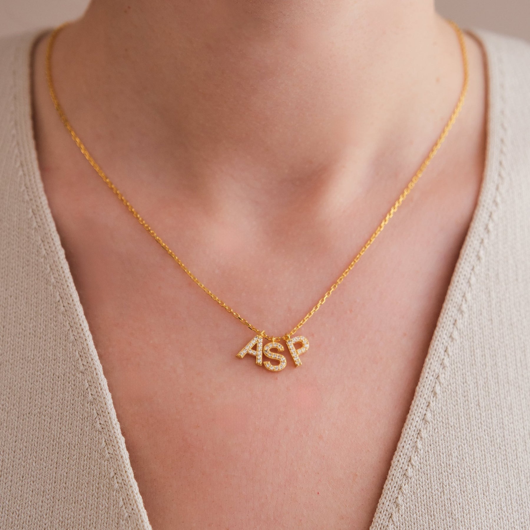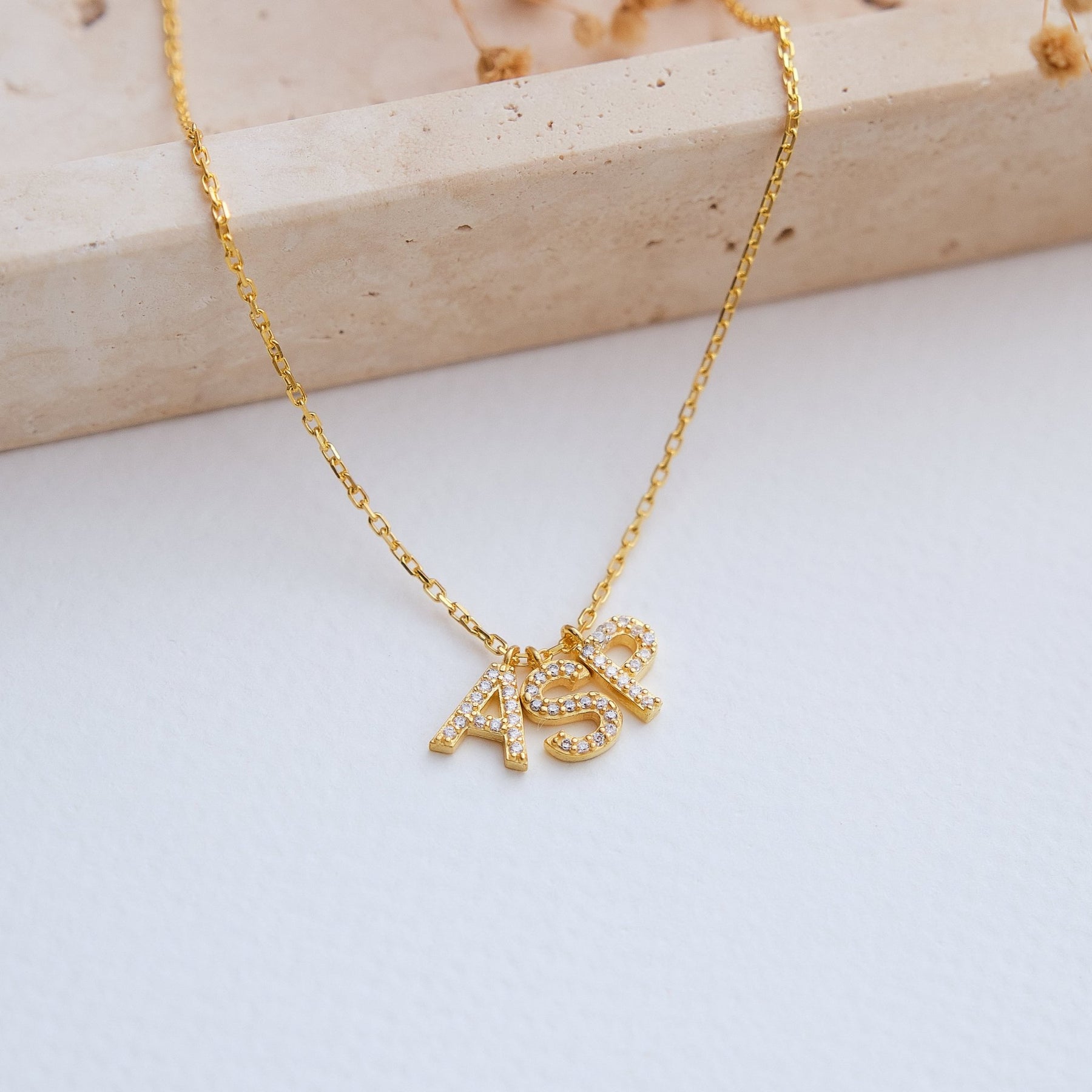 Zirkonia Initial Halskette bis zu drei Buchstaben - OTANTO
