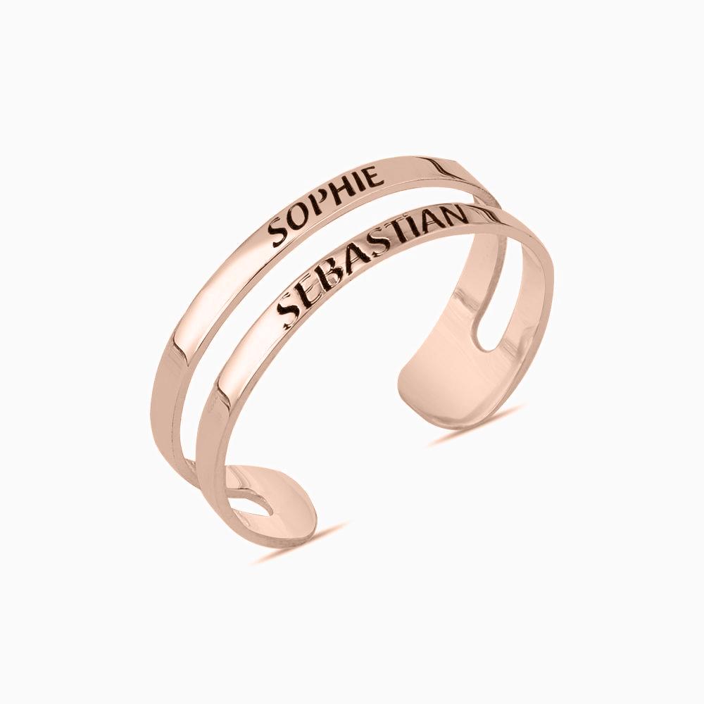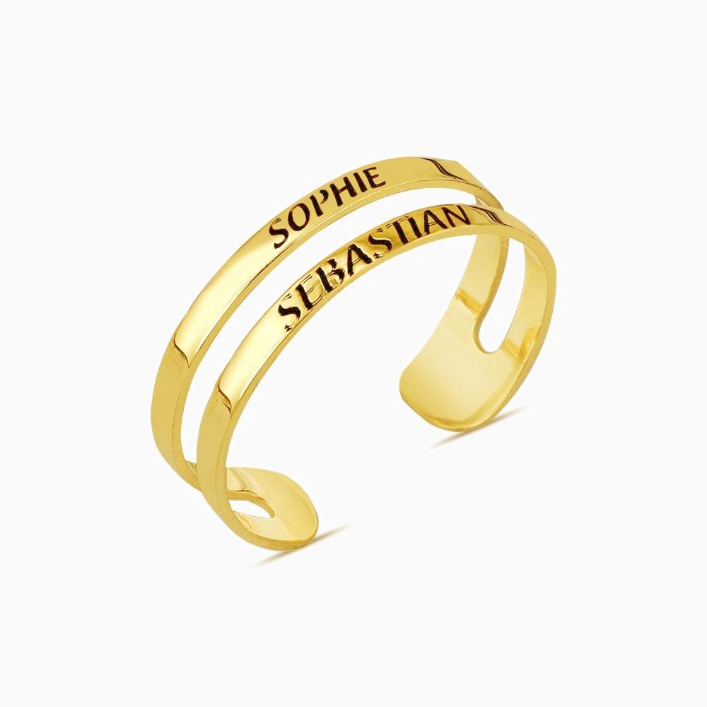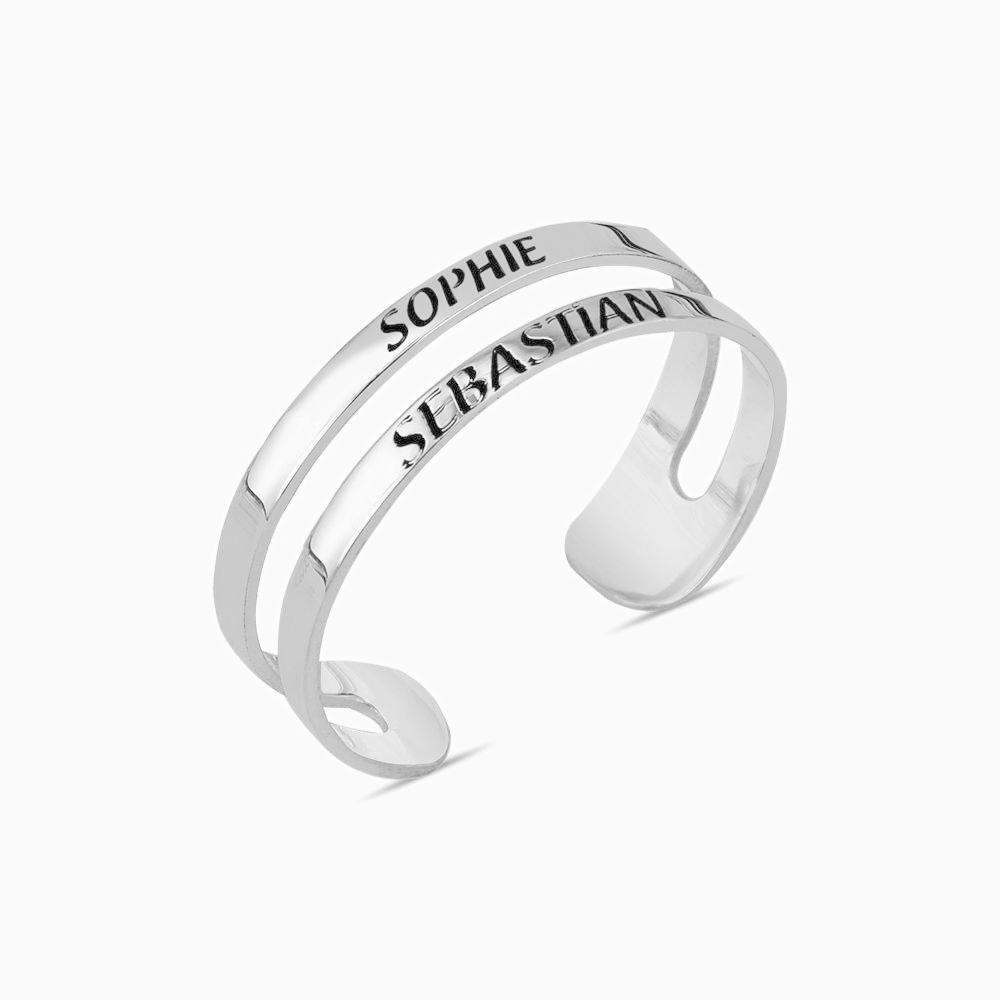 Quando un gioiello non è solo un accessorio, ma un pezzo unico, questo anello è la scelta giusta. Con questo gioiello personalizzato emerge il tuo stile personale. Lo anello può essere realizzato su misura con più nomi o parole ed è il tuo gioiello di moda unico. Per tutti gli individualisti, ma anche come regalo creativo, è il gioiello perfetto che si abbina idealmente a ogni outfit - sia sportivo che elegante.