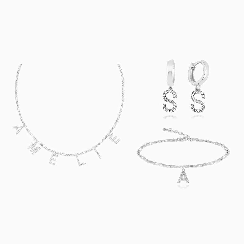 Inhalt: Figaro Buchstaben Kette, Armband und Ohrring
