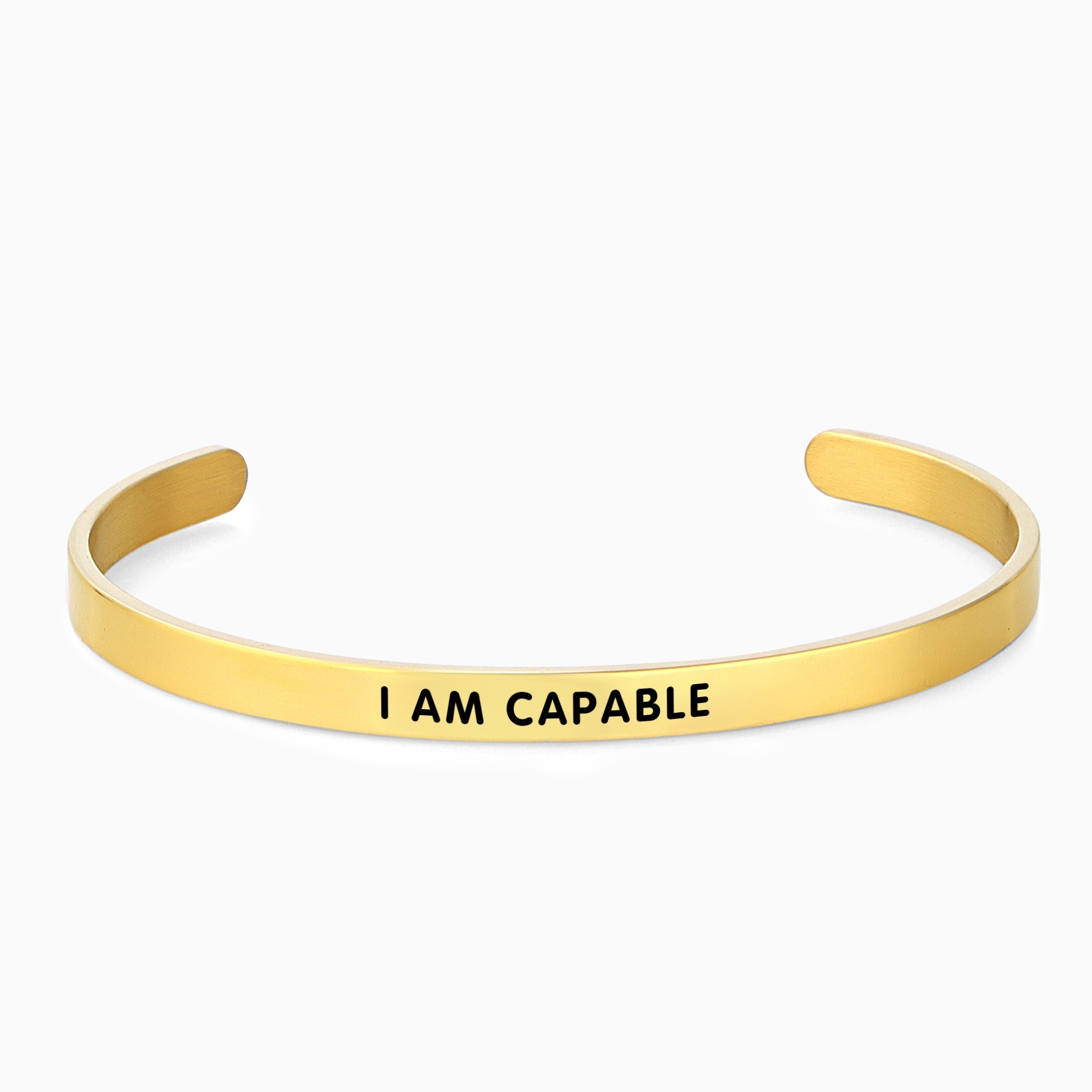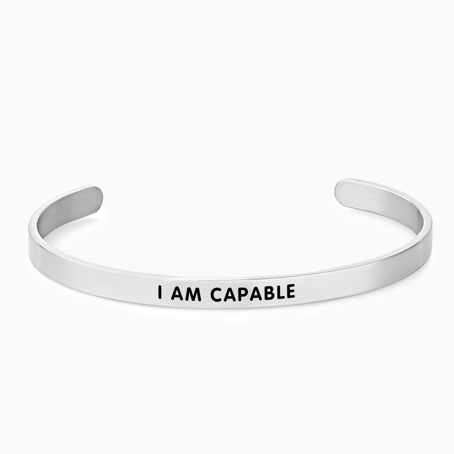 Entdecke die ermutigende Botschaft des Armreifs "I am capable" und lass dich von seiner tiefgründigen Bedeutung inspirieren. Dieses kraftvolle Schmuckstück erinnert dich daran, dass du fähig und kompetent bist, jede Herausforderung zu meistern. Der Armreif "I am capable" verkörpert die innere Stärke und das Vertrauen in deine Fähigkeiten.