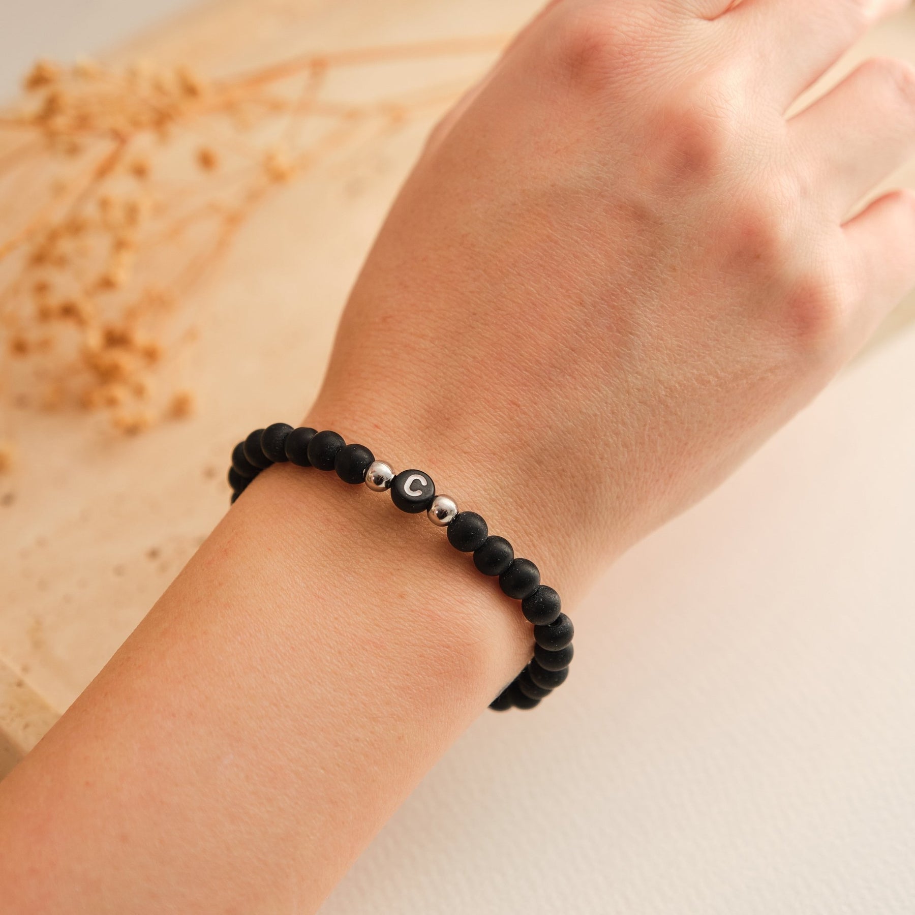 Initial Partnerarmband mit schwarzen Perlen - OTANTO
