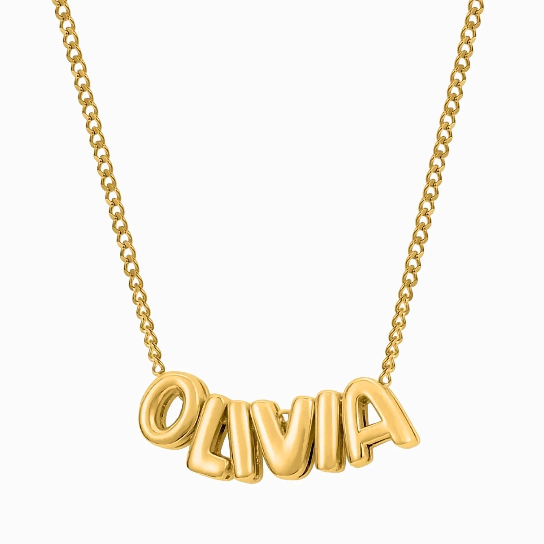 Die Bubble Namenskette aus 925er Silber vereint Eleganz mit einer persönlichen Note. Aus hochwertigem Sterlingsilber gefertigt, bietet sie Langlebigkeit und Glanz. Der Name oder das Wort deiner Wahl wird in einer verspielten Bubble-Schrift eingearbeitet, was der Kette ein einzigartiges, rundes Design verleiht. Jedes Stück ist maßgeschneidert, was es zu einem besonderen Geschenk für alle Anlässe macht. Verfügbar in verschiedenen Längen, passt sie zu jedem Stil. Dank des sicheren Verschlusses und der Hautfreundlichkeit des Silbers ist sie ideal für den Alltag. Ob als persönlicher Ausdruck oder als Geschenk, diese Kette ist eine zeitlose Wahl, die Individualität und Stil miteinander verbindet.